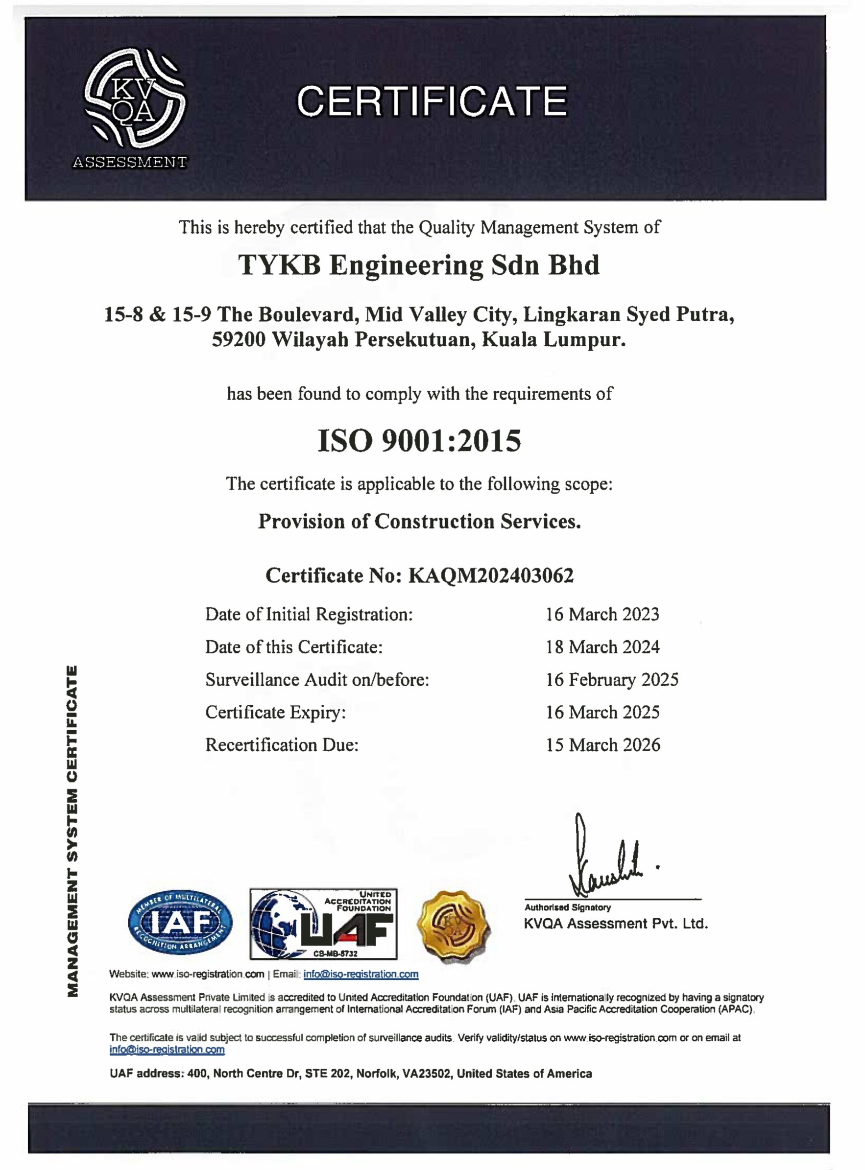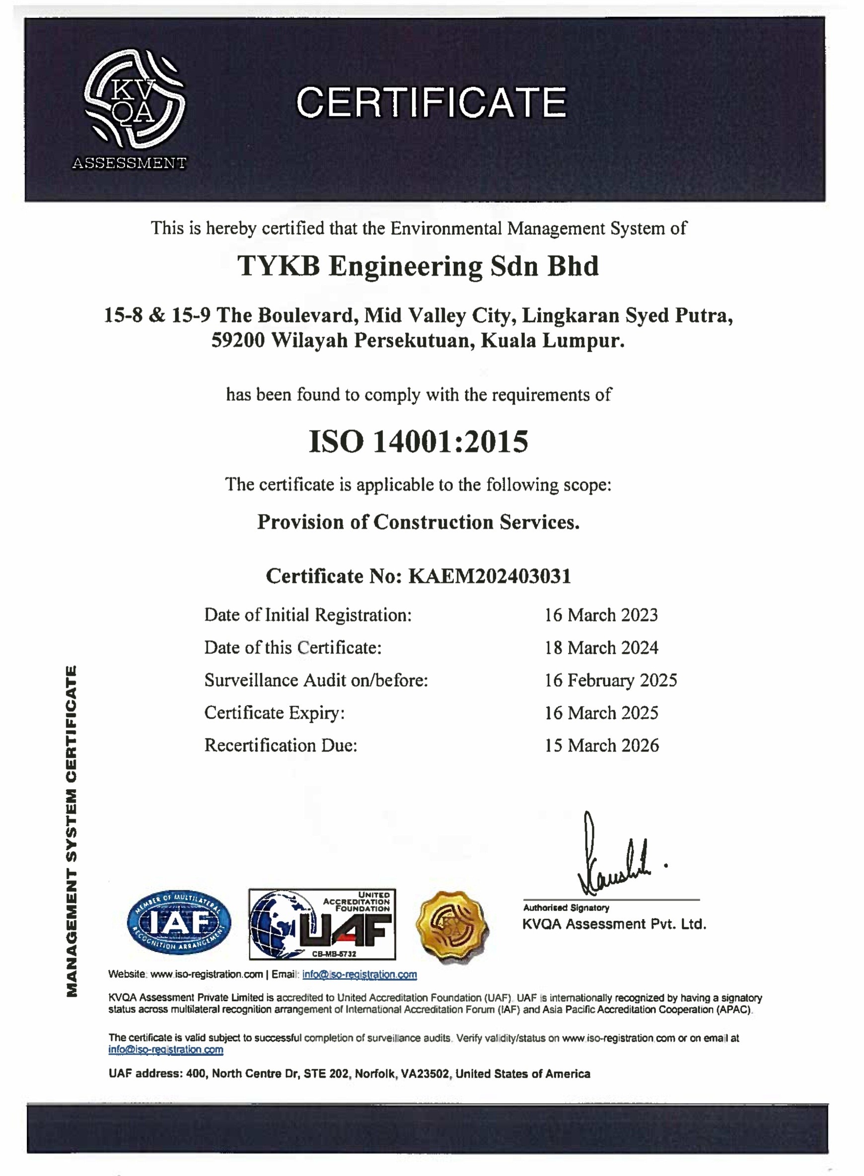 Date of Certification: 18 March 2024